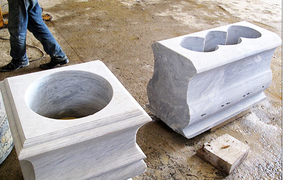 کارکرد این دستگاه شبیه به دستگاه کلید سازی می باشد . شابلون که نمونه ای از مقطع کار مورد نظر است را روی دستگاه قرار می دهیم،سپس تنظیمات مربوطه را انجام داده و سرانجام دستگاه بصورت خودکار شروع به ایجاد شکل شابلون بر روی سنگ می کند (مدل دیگر آن داشتن پنل CNC است که بر اساس برنامه عمل می کند)